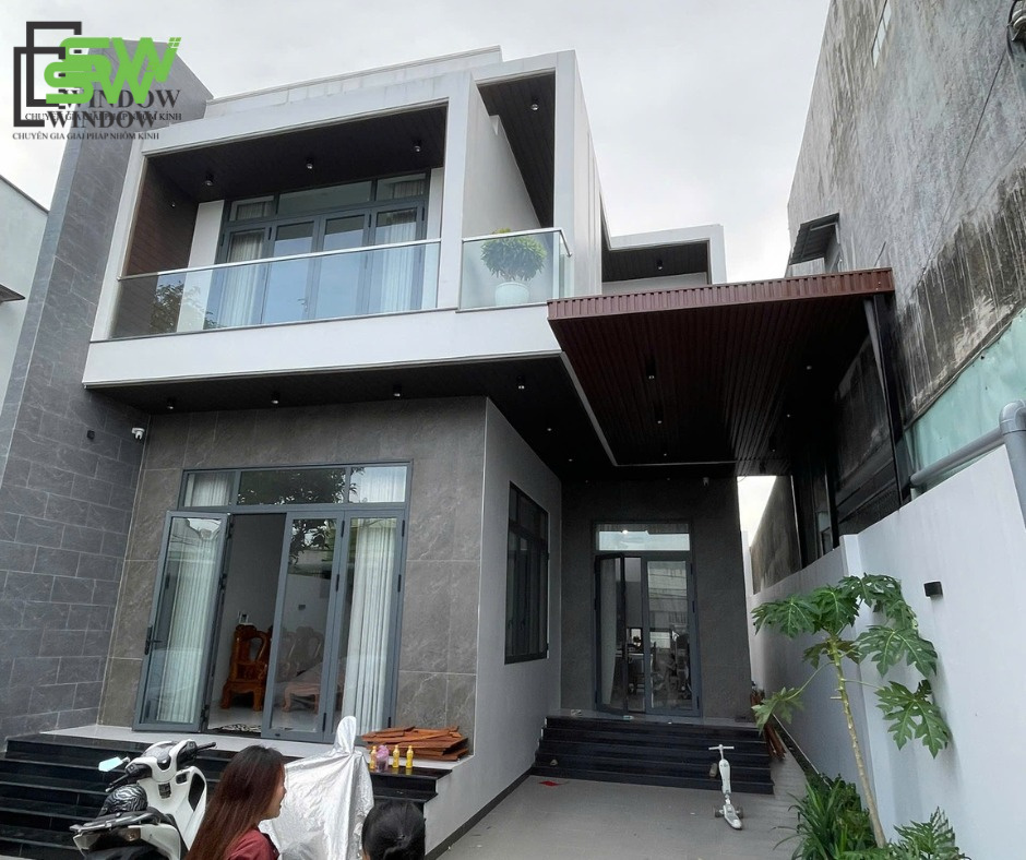 Nhà hướng Tây nên chọn cửa nhôm màu tối + kính phản quang hoặc kính Low-E để giảm nhiệt, chống nắng, tăng tuổi thọ cho nội thất.