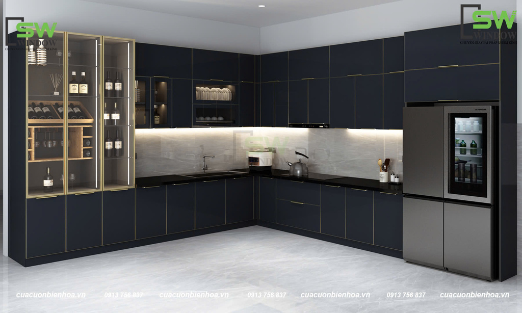 Tủ bếp nhôm kính do SW Window thi công luôn được thiết kế đo ni đóng giày, đảm bảo đẹp, gọn và thuận tiện trong sử dụng.