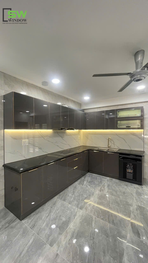 Tủ bếp hợp kim nhôm cánh kính SW Window là lựa chọn hoàn hảo cho gia chủ muốn một không gian bếp: